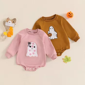 Baby Halloween Ghost Embroidery Romper